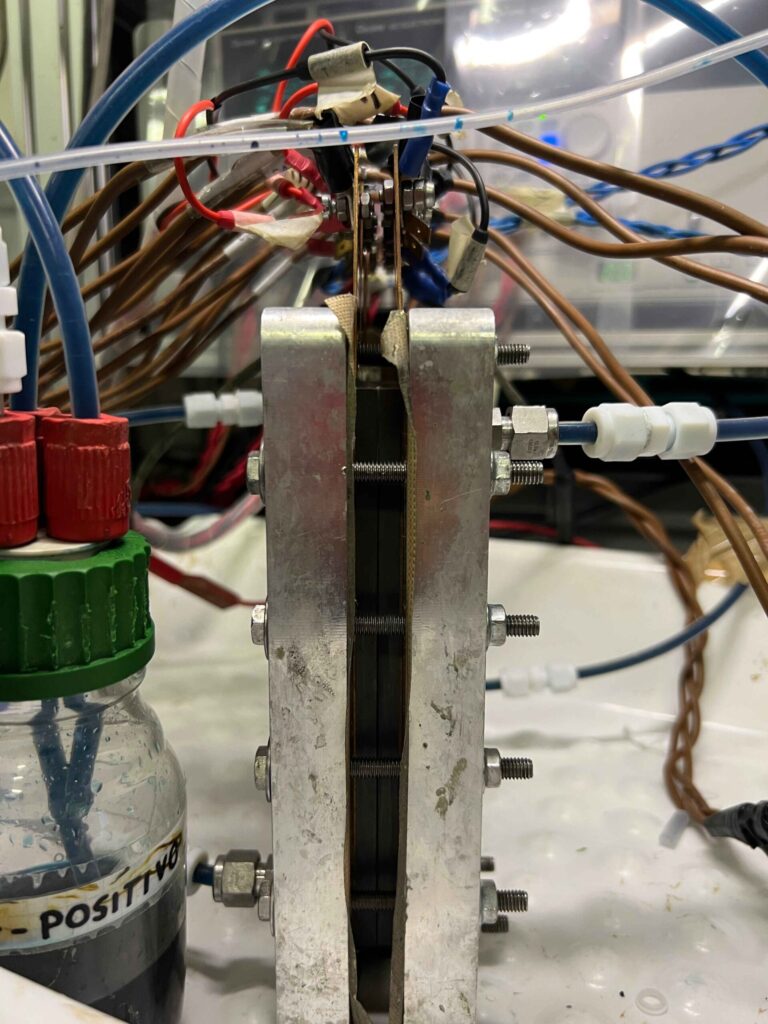 The study of the transport phenomena in VRFB is performed through an experimental activity combined with a modelling one. The different nature of the complex phenomena that take place in the device requires me to have a holistic approach. This turns in the necessity to enlarge my modelling skills, that range from the simulation of the electrochemical phenomena to the computational fluid dynamics (CFD). Having a direct response of the effectivity of my strategies is one of the best parts of my work, as I can experimentally prove the intuitions coming from the modelling activity.