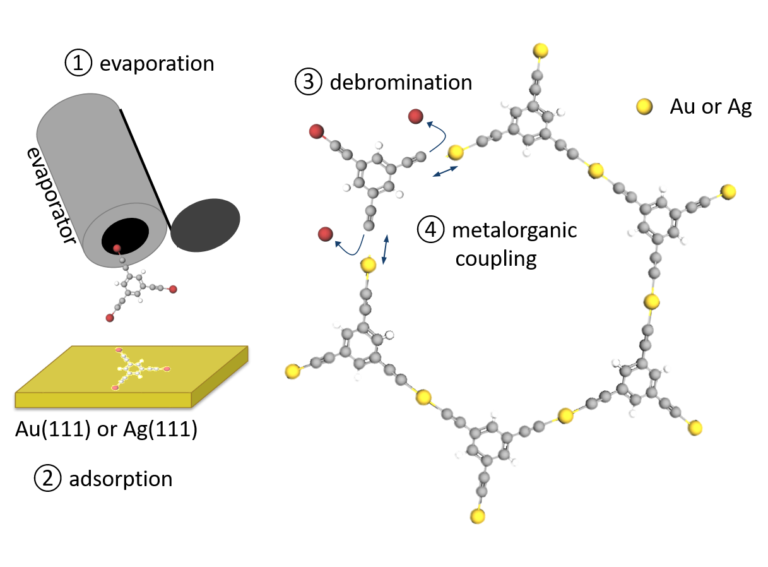 My PhD research focuses on novel two-dimensional materials and heterostructures. I synthesize both inorganic 2D chalcogenides – such as MoS2, WS2 or Bi2Te3 – by pulsed laser deposition, and graphdiynes (sp-sp2 hybridized carbon networks) using organic molecular-beam epitaxy and on-surface synthesis. I characterize their morphology and atomic structure under ultra-high vacuum through scanning tunneling microscopy and low-energy electron diffraction, while Raman spectroscopy investigates their vibrational properties. Recently, I probed their electronic structure with angular-resolved photoemission spectroscopy using synchrotron light.